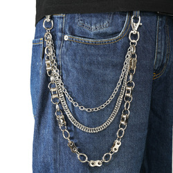 TC028 para hombre de alta resistencia de triple capa de Metal Punk Hip Hop Jean cadena llavero cartera cinturón Streetwear accesorio