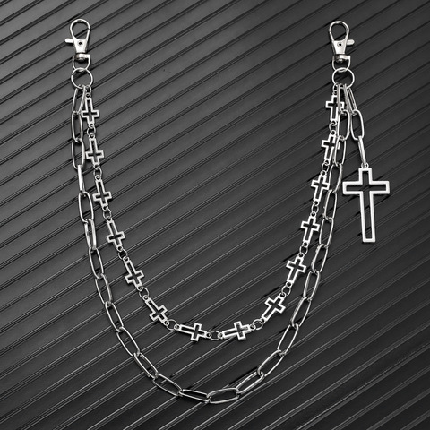 TC094 Cruz hueca de doble capa Punk pantalones cadena Vintage Hip Hop Jeans cartera cadena Rock accesorios de ropa para hombres y mujeres