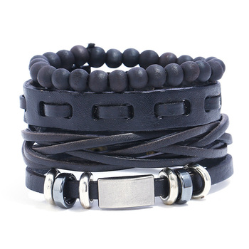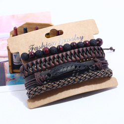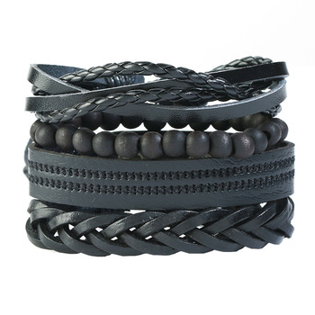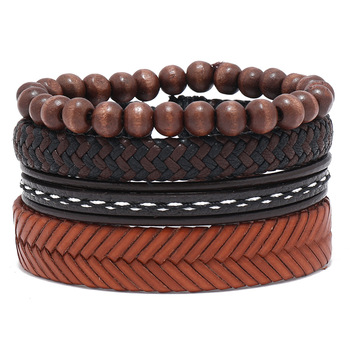 TZ052 Vintage 4 Uds conjunto de pulsera de cuero trenzado Boho cuentas de madera pulseras tribales étnicas Wrap Cuff pulseras regalo de fiesta