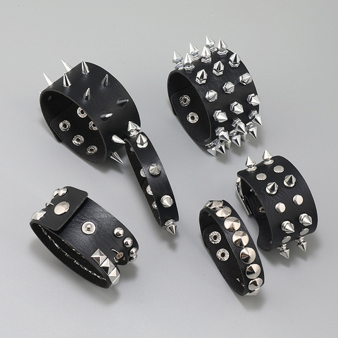 TZ625, conjunto de pulsera con tachuelas de cuero Punk de 6 piezas, joyería Unisex personalizada, regalo único vanguardista para hombres y mujeres