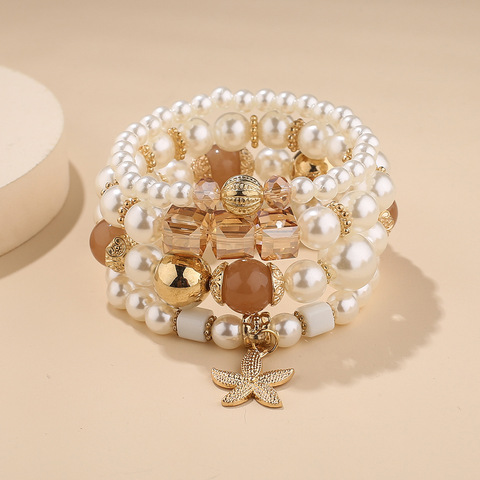 WBB033, conjunto de pulseras con abalorio de estrella de mar de aleación multicapa de estilo bohemio, pulseras elásticas con cuentas apilables para regalo de fiesta de boda